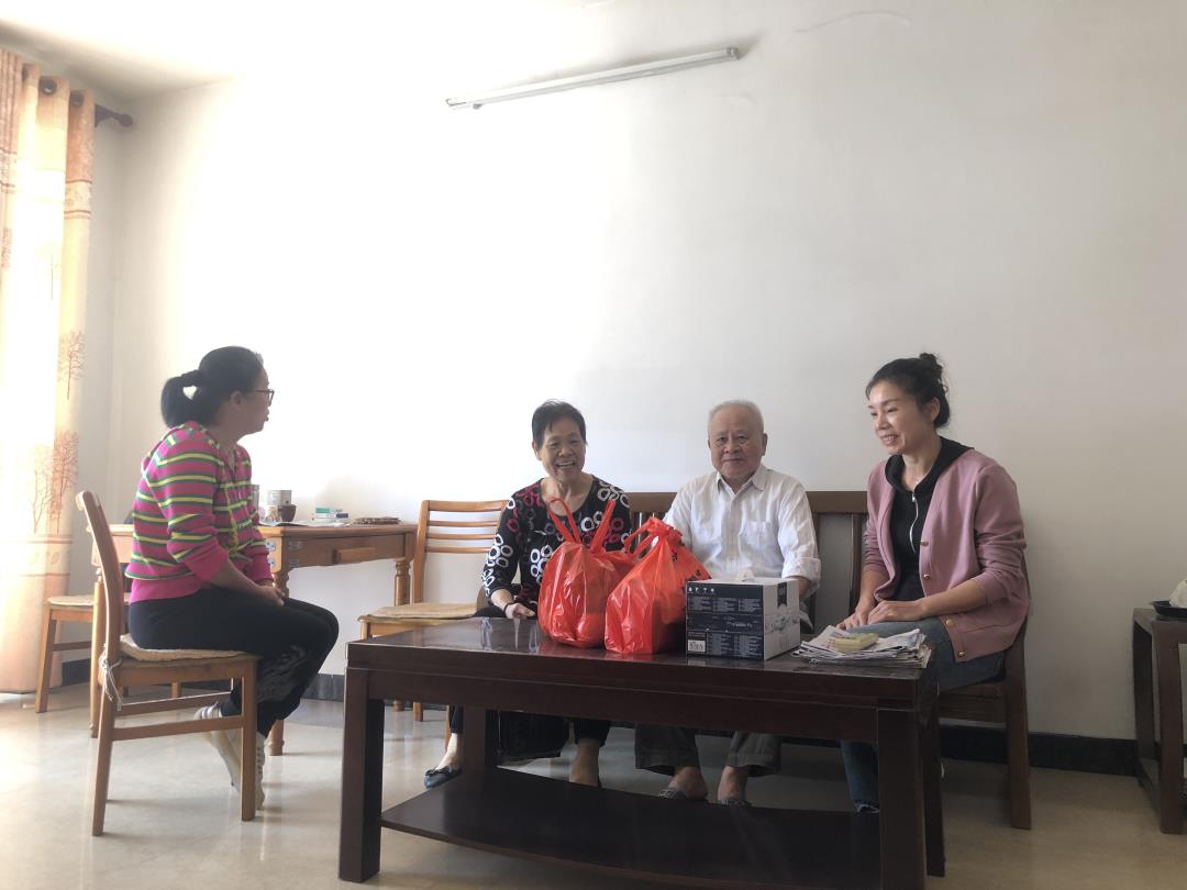 重阳节当天,该中心专门组织慰问小组上门探望慰问部分年事已高、行动不便的退休老同志,为他们送去牛奶、水果等慰问品,送上节日的祝福及组织的关心。工作人员与老同志们亲切交流、唠家常,详细了解老人身体、生活及家庭状况,叮嘱老人注意身体,保持健康科学的生活方式和积极乐观的生活态度。