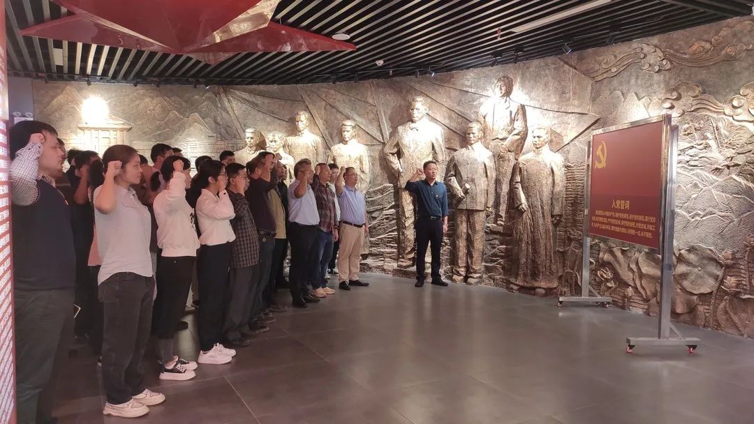 通过浏览历史图文、瞻仰革命文物,生动的人物背景和铿锵的字眼让人有种强烈的历史感。听着解说员讲述着历史故事,走着英雄们曾经踏过的路,党员干部职工深切地感受到革命先烈的英勇无畏与共产党人的初心使命。面对鲜红的党旗再次庄严宣誓,掷地有声的誓词再一次点燃党员干部职工们永远跟党走的决心。