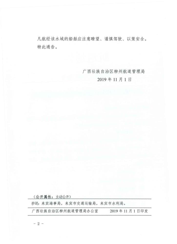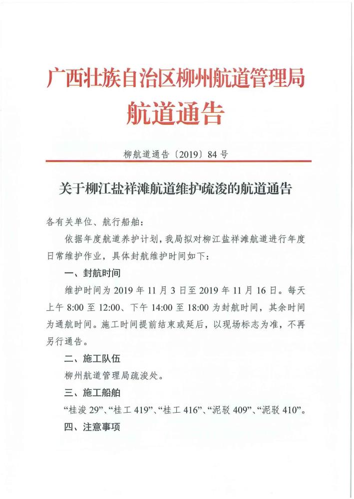 关于柳江盐祥滩航道维护疏浚的航道通告