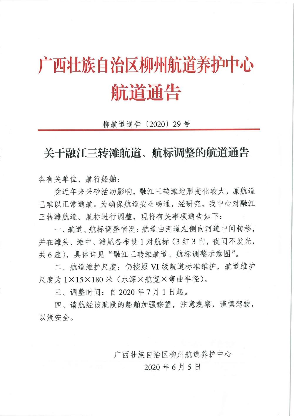 关于融江三转滩航道、航标调整的航道通告
