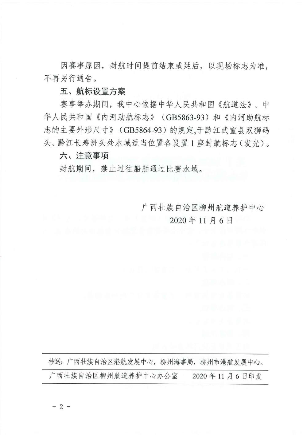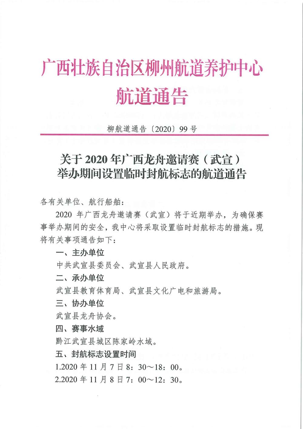 关于2020年广西龙舟邀请赛(武宣)举办期间设置临时封航标志的航道通告