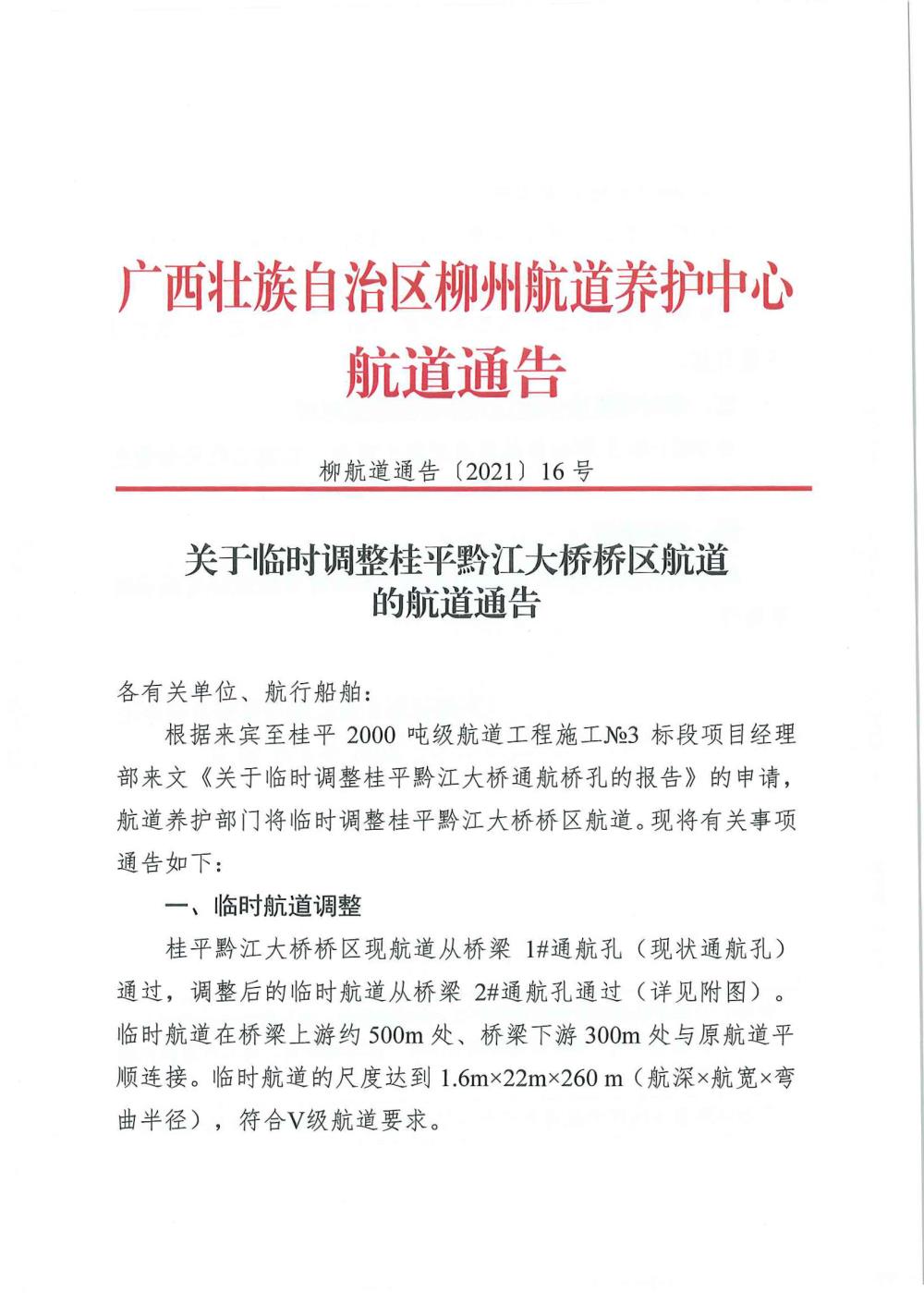 关于临时调整桂平黔江大桥桥区航道的航道通告