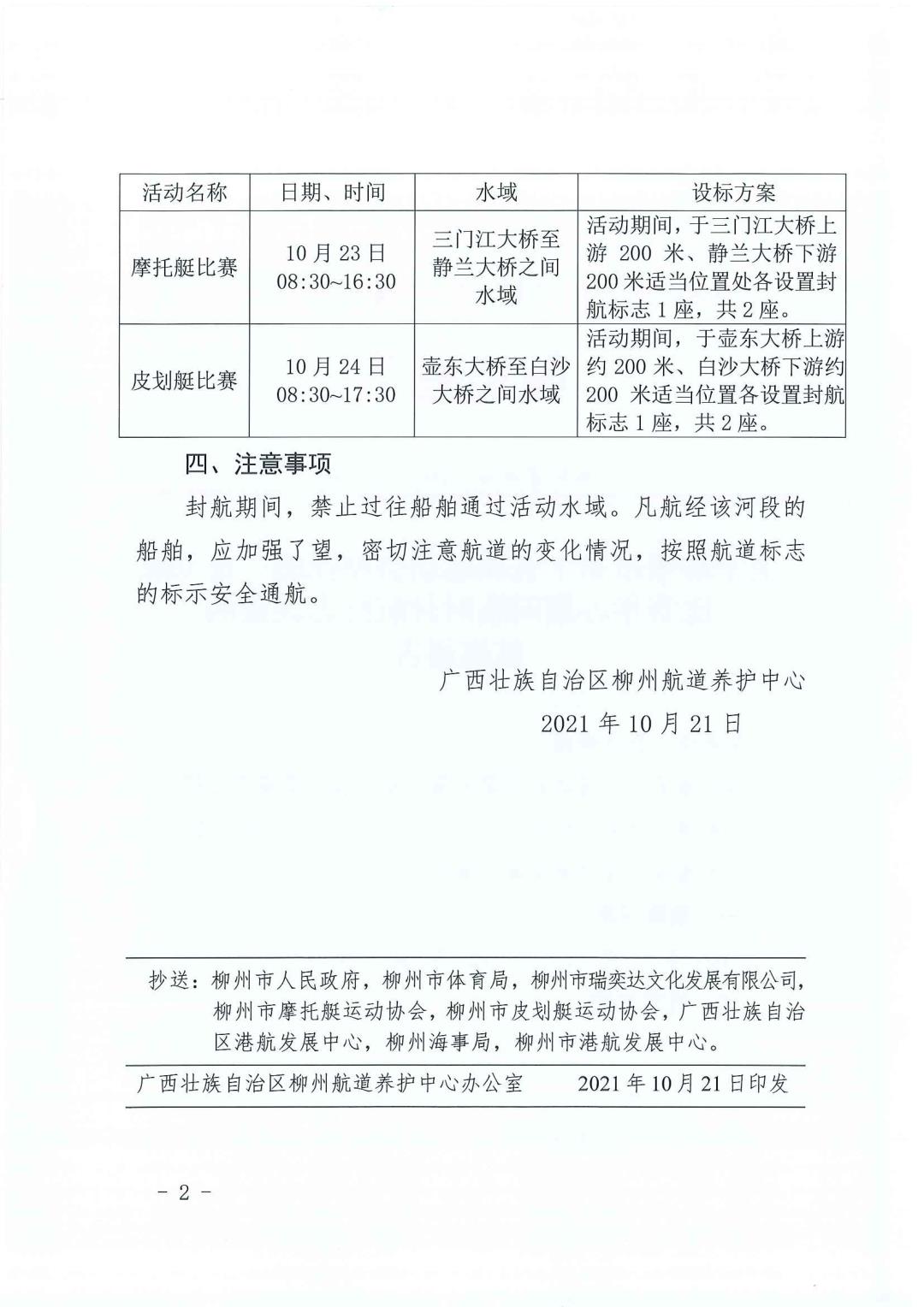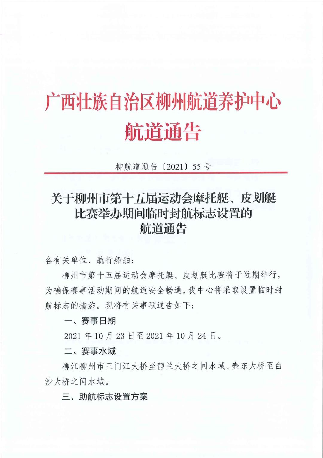 关于柳州市第十五届运动会摩托艇、皮划艇比赛举办期间临时封航标志设置的航道通告
