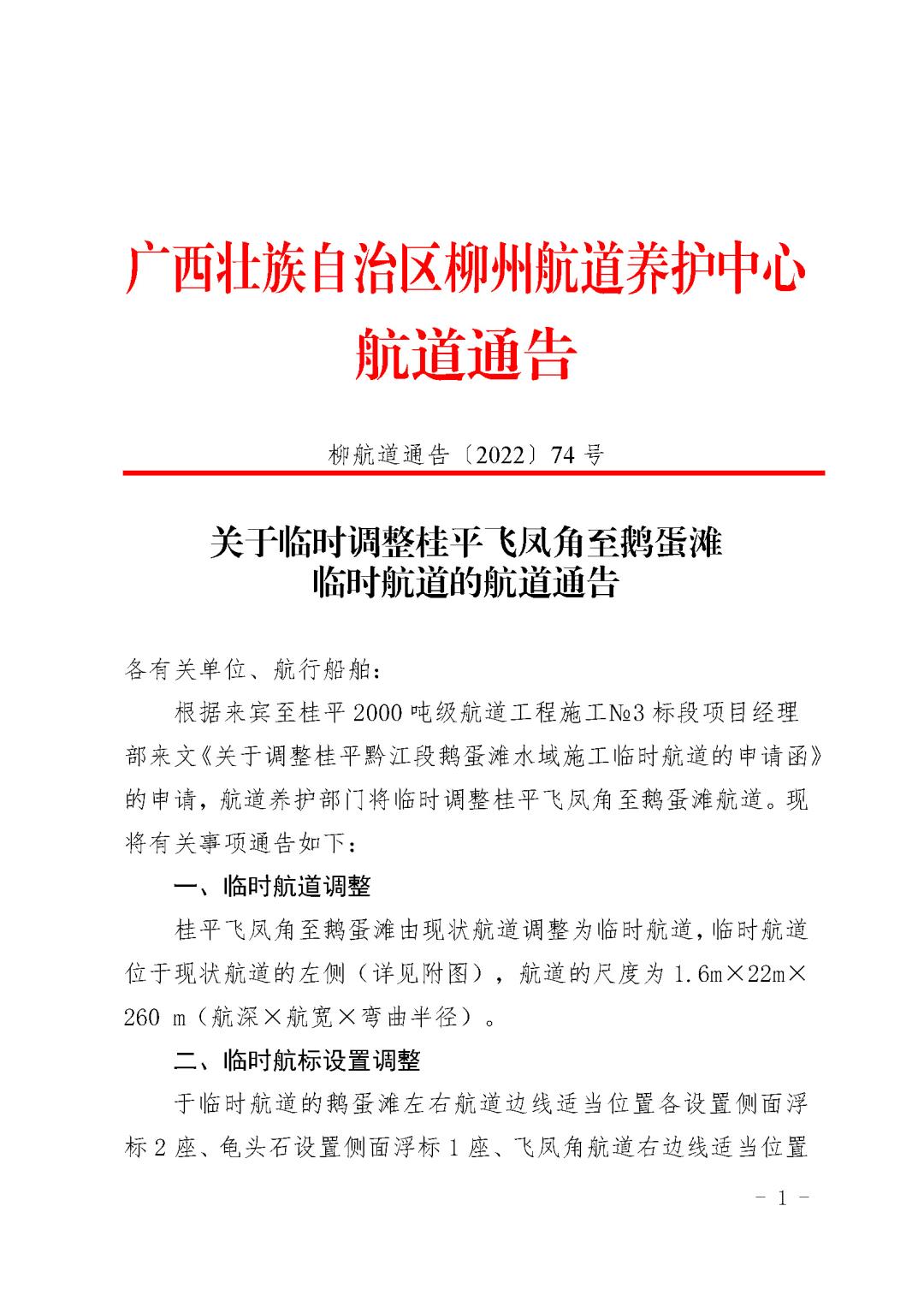 关于临时调整桂平飞凤角至鹅蛋滩临时航道的航道通告