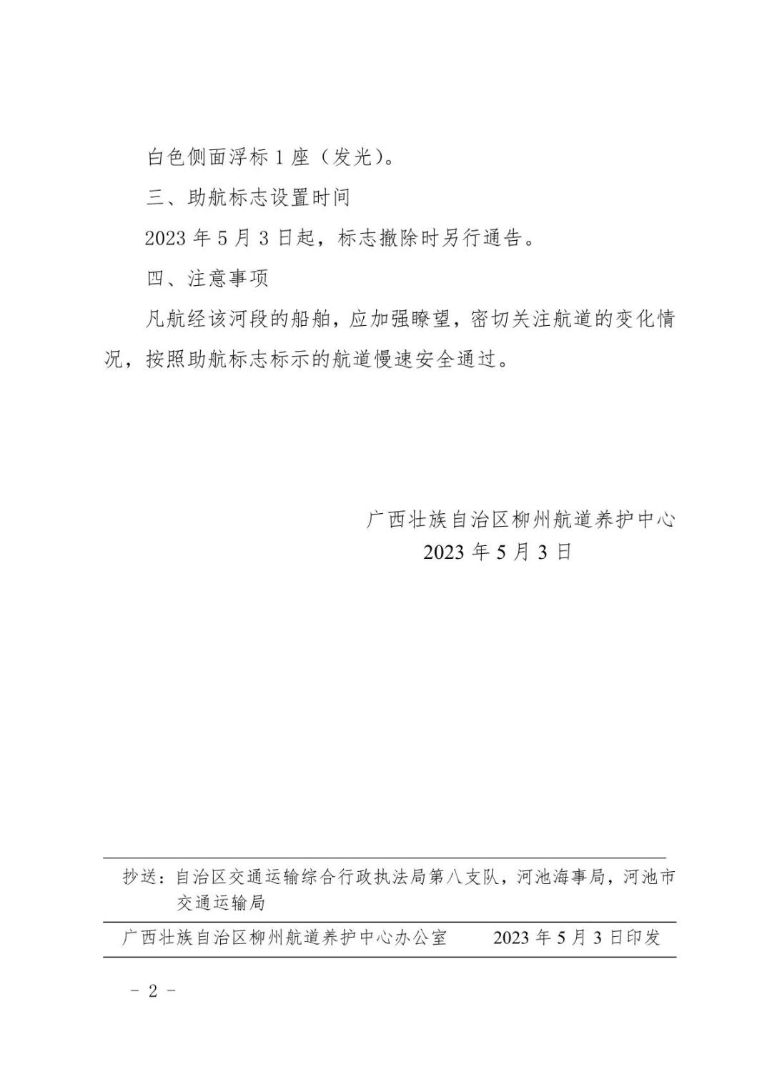 关于在红水河天峨四桥水域设置临时应急助航标志的航道通告