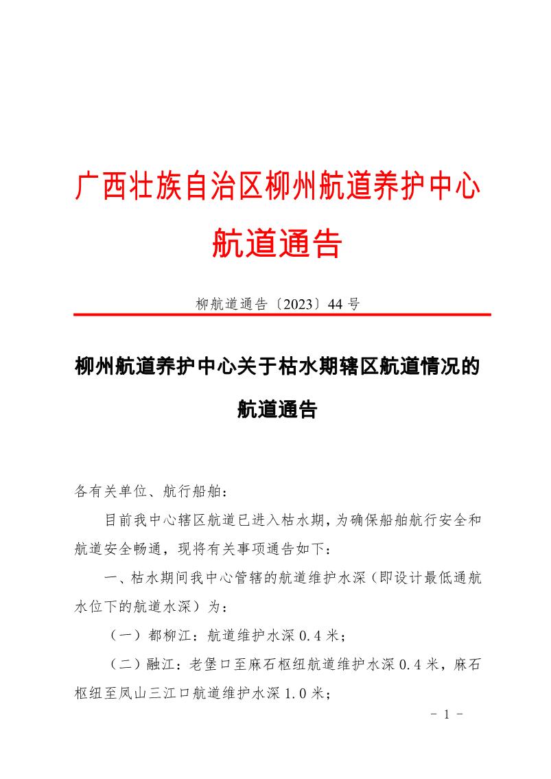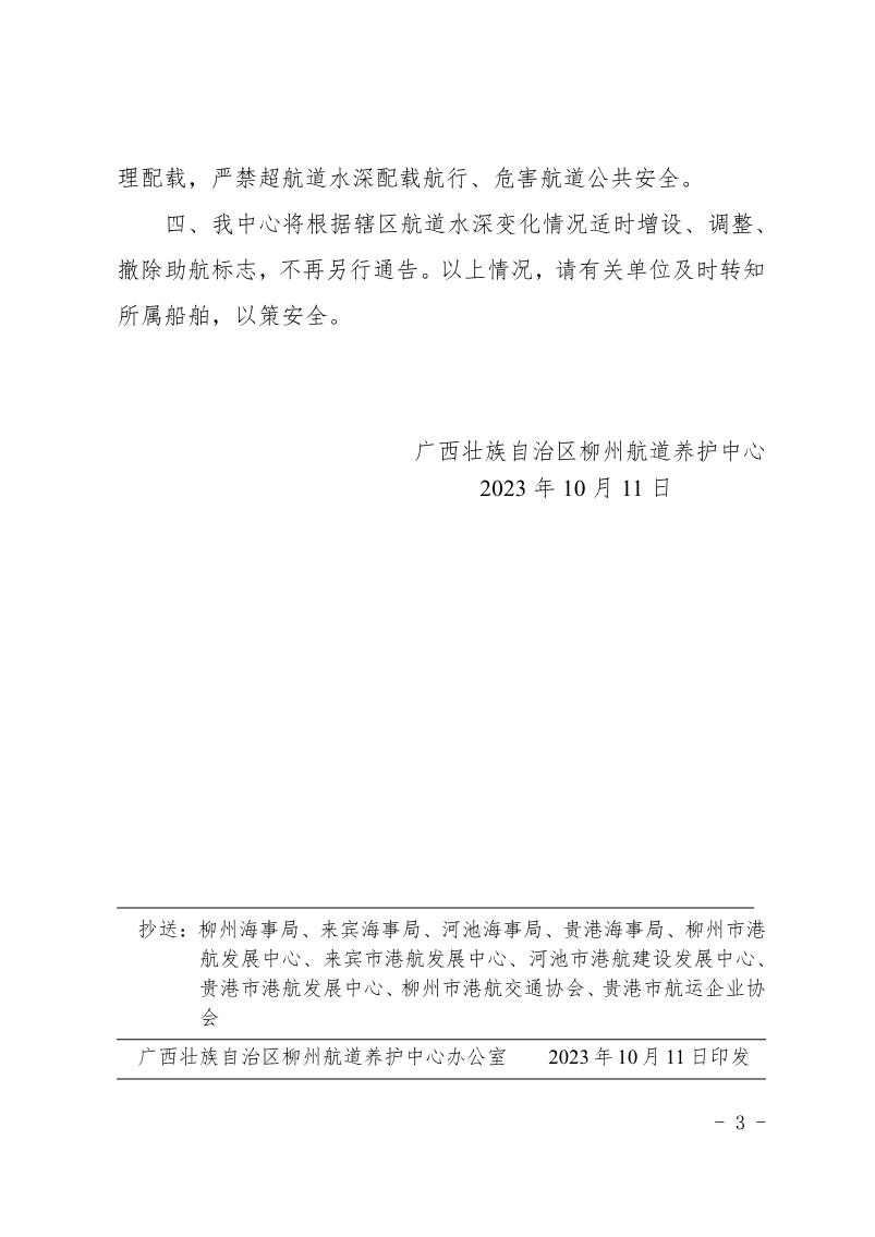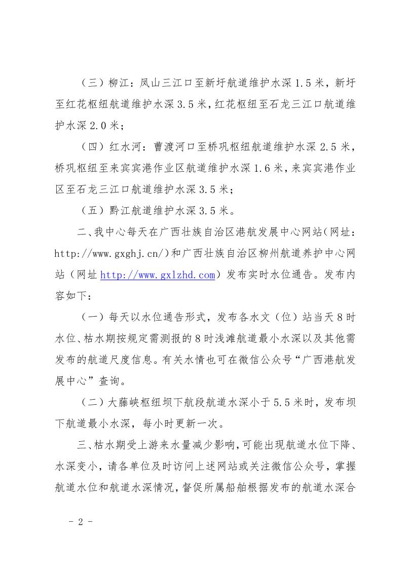 柳州航道养护中心关于枯水期辖区航道情况的航道通告