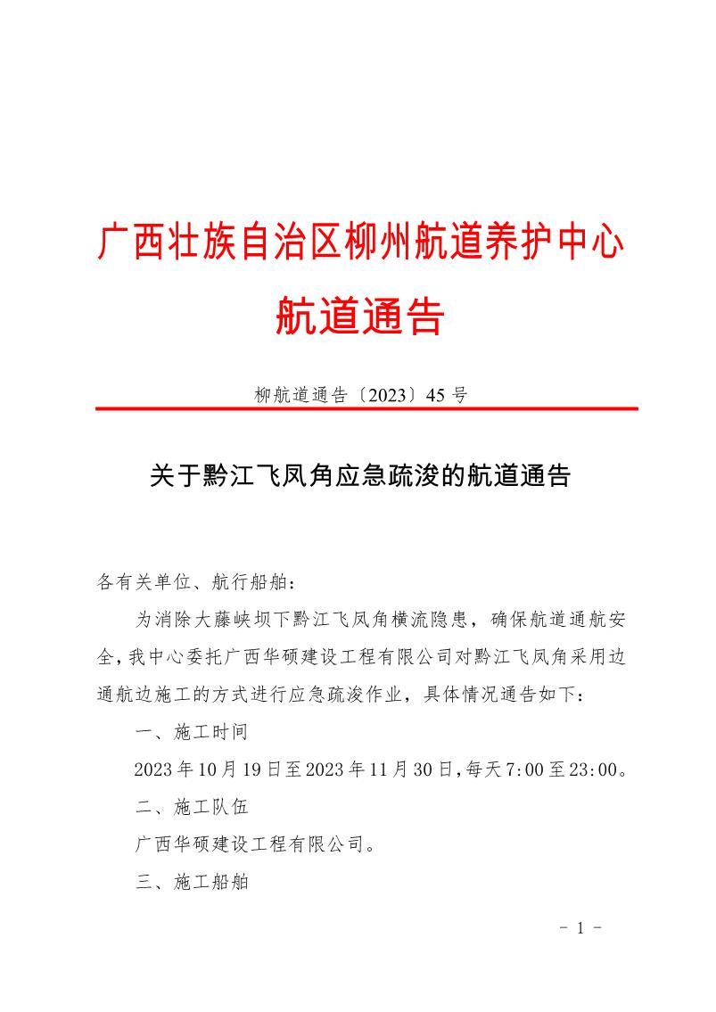 关于黔江飞凤角应急疏浚的航道通告