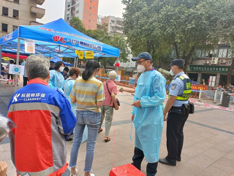 社区是疫情联防联控的第一线,也是“外防输入、内防扩散”最有效的防线,梧州船舶检验中心自9月6日起每天组织安排3名党员干部下沉到社区一线参与疫情防控工作。防疫工作事无巨细,党员干部们在社区核酸检测点积极协助社区工作人员及医务人员开展核酸检测工作,检查健康码,指导居民注册核酸码,维护现场秩序,组织居民保持距离有序排队,并耐心为居民答疑解惑、宣传解释当前疫情防控政策,提醒居民做好个人防护。
